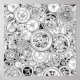 A dense, non-radial repeating abstract pattern created entirely from interlocking, high-precision clockwork gears and escapement mechanisms. A visual study in mechanical complexity, perfect for complex textiles or advanced pattern coloring.