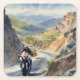 En fantastisk konst biet som fångar upp en spännande motorcykel genom ett bergslandskap. Den vibrerande scenen visar hastighetens intensitet och den naturliga skönheten i att krossa bergsvägar.