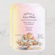 Ett mycket söt High Tea Möhippa Tea Party-parti med hög tea-Firande inbjöd till en delikat gult och rosa moln med ett färgstarkt dessertstånd omgivet av blommor och kakor. Jag har valt Linen papper att du kan byta till en som du vill ha bättre.