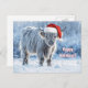 Glad helg på ett sött sätt med den här lilla höglastkalven eller stut i snö. Han tittar direkt på mottagaren, med tomten Hat. Ett sött julkort.