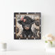 Den här vackra väggklockan har en fluffy svart kalv med charmerande rosa, omgiven av mjuka solblommor och en känslig fjäril. Dess fantastiska, konstnärliga utformning skapar en söt och vismisk tidspunkt, perfekt för att ta med sig en liten bit av charm från landsbygden och närhet till vilket rum som helst.