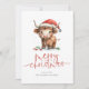 Cute Highland Cow Namn 2026 Calendar God jul. Tillgänglig digitalt och utskriven. Festiv utmärkelse för helgdag, med den här roligten med en söt högland i hans julhatt. God jul befinner sig i ett modernt skript och anpassar sig lätt under hälsning och namn. En handfull kalender för 2026 är på baksidan.