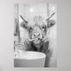 Highland Cow Brushing Teeth Print, Funny Bathroom Wall Art