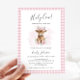 Celebrate the upcoming arrival of a precious baby girl with this charming “Holy Cow!” baby shower invitation. Featuring an adorable watercolor baby calf wearing a boho flower crown, surrounded by soft pink florals and a classic pink gingham border, this invitation is perfect for a sweet western or farm themed baby shower.