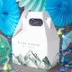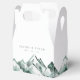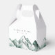 En del av Highland-samlingen av Redwood & Vine Design Co., är den här personligens bröllopsförmånslåda en matchande perfekt för rustika, utomhus eller målbröllop. Konstruktionen har handmålade vattenfärgsbergstoppar i mjuka gröntar, parade med anpassade för namn och ett datum. Perfekt för förpackningar av söta treter, små presenter eller för att ta hem godis. Den här snyggten ger firande en scenisk och sofistikerad beröring.