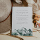 Perfekt för en bröllop bland topparna, den här inbjudan innehåller rik vattenfärgsbergsgrafik parad med tidslassefärgad serif-typografi. Utskriften på mjukt texturerad vit papper känns upphöjd och ekologisk - perfekt för par som firar i bergen, på en lott eller i en nationalparksmiljö.
