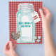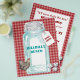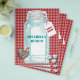 Ha roligt med den här vintagen inspirerad Canning Burk Red Gingham Graphic Design. Kycklingsgrafik kan tas bort. Teckensnitt storlekt, stil och färg kan ändras. Ändra texten så att den passar ditt eget tillfälle. Perfekt för ett Hillbilly- eller Land-temaevenemang.