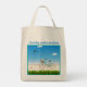 Roligt Hilton Head Island som kör på stranden till väskan. Tur tealblåcykel med en basket-fullt blommor parkerade på stranden med havet i bakgrunden. Söt blå himmel med stöldmoln och strandfåglar. En orange stjärnfisk ljuger i sanden nära cykeln. Den här söta väskan får plats var som helst, vaknar, reser, pysser eller shoppar.