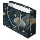 Mystiskt konstellationsmönster presentpåse med gyllene stjärnor, himmelska linjer och drömmaktiga moln över en mörk natthimmelsbakgrund. Perfekt för astrologi-entusiaster, stjärnskådare, astronomi-fans, andliga sökare och alla som älskar kosmisk och himmels stil.