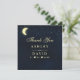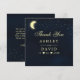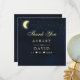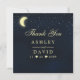 Himlakropp Måne Stjärnor Midnight Blå Bröllops Tacksamhetskort. Denna design har tindrande stjärnljus med en lysande halvmåne på den stjärnbeströdda natthimlen.