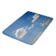 Himlar är blått och vita moln passerar förbi badrumsmatta