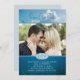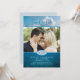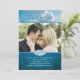 Marine themed, Blue vatten och himlar, fotot sparar datumet giftermål meddelande. Konstruktionen blå himmel och vatten har bild av paret i centrum med ställe för första brev av namn monogram. All information om bröllop trycks vid grund över färg i det djupa blåhavet. "Spara our date" står överst på bilden av himlar. Ett vågrät-foto fungerar bäst.