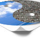 Pristine blå himmel med rena vita moln mot industriellt metall. Livet är fullt av motsättningar och denna utformning behållor dem i rätt perspektiv.