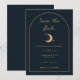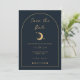 Designad för att samordna med vår Celestial Mystic-kollektion, har detta unika anpassningsbara save the date-inbjudningskort vackra gyllene himlakroppar på en mörk marinblå bakgrund med en valvgräns. För mer avancerad anpassning av denna design, t.ex. ändra layout, typsnitt eller textstorlek, klicka på "ANPASSA"-knappen ovan. Vänligen kontakta mig om du har några frågor!