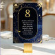 Tillsätt en touch av kosmisk elegans på ditt bröllopsfirande med detta snygga himmelska sol- och månbröllopsbord nummer i svart och guld. Designad med en rik svart bakgrund och prydd med glänsande guldillustrationer av solen, månen och stjärnorna, kombinerar detta bordnummer himmelskt charm med modern sofistikation. Perfekt för ett mystiskt, bohemiskt eller stjärnklar natts bröllopstema, guidar det dina gäster med stil samtidigt som det förstärker stämningen vid ditt bord. En vacker balans mellan ljus och skugga, ger denna design en tidlös och romantisk glans till din fest.