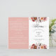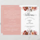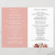 Det här elegant bröllop-programmet har en fantastisk blommigt gräns på ovansidan och på baksidan, med ömtåliga blommor i en kombination av , dammiga ro, burgundi och persikofärgade toner. Använda av modern information om kalligrafi. Två sidor i kontrast till den romantiska rosan färg något mörkare än vår inbjudan att kontrastera det vita teckensnittet färg. Anpassa programmet på båda sidor. Obs! Det här programmet kommer att bli platt och det krävs att det viks ner i mitten för att samlas. Standardvärdesprogrammet rekommenderas.