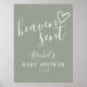 En modern minimalistisk baby shower skylt med ett sött handritat hjärta och stilren typografi på en sagegrön bakgrund. Designad av Thisisnotme©