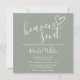 En modern minimalistisk babyfest-inbjudan med en söt handritad hjärta och stilren typografi på en salviagrön bakgrund. Designad av Thisisnotme