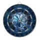 Sängarna av dartboarden är klart synliga, avskilt från varje annan av ett tunt vitglöd runt om varje säng. De traditionella röda och gröna färgerna har ändrats till blått och vit.