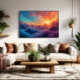 "Himmel Hav" fångar det magiska mötet mellan berg och moln vid solnedgång. Levande och mjuka färger smälter samman i en eterisk scen – perfekt för utrymmen som söker skönhet, lätthet och visuell inspiration. Ett fönster till det sublima