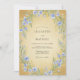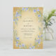 En delikat krans av mjuka himmelblå blommor och frodig grön lövverk skapar en eterisk och romantisk kant. Den varma, gyllene bakgrunden förstärker det botaniska arrangemangets naturliga skönhet och inger en känsla av mjuk elegans och tidlös charm. Denna design erbjuder en drömsk, lantlig estetik perfekt för en lugn tillställning.