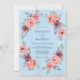 En delikat krans av korall- och djuprosa blommor pryder en mjuk himmelblå bakgrund. Denna romantiska design inger en känsla av mild elegans, perfekt för en lättsam utomhusfest. De akvarellinspirerade blommorna har mjuka kronblad och subtilt lövverk.
