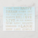 Guld Himmelblå Ombre Akvarell med guldfärgade inspirerande citat: dröm, tro, lev, tänk lyckliga tankar, skratta, håll livet enkelt