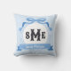 Himmelblå omvänd grekisk nyckel spänne monogram kudde
