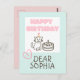 Himmelblå & rosa Grattis på födelsedagen Katt Post Vykort
