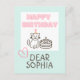 Himmelblå & rosa lycklig födelsedag katt vykort