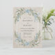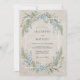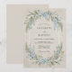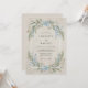 Denna design har en mjuk akvarellpalett i himmelblått och salvia grön mot en texturerad pergamentbakgrund. Ömtåliga delphinium och frodig eukalyptusgrönska skapar en romantisk, botanisk atmosfär. Den måleriska stilen frammanar en lugn, vintage estetik perfekt för en utomhus vår- eller sommarhändelse.