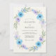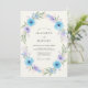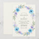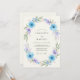 Denna design har en delikat arrangemang av himmelblå och lavendelblommor med subtilt grönt lövverk. Den luftiga akvarelleffekten skapar en romantisk och lugn stämning, perfekt för en vår- eller sommarhögtid.