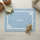 Himmelsblå och vit grekisk nyckelmonogram fleecefilt