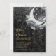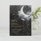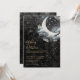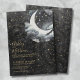 Under Stjärnorna Halvmåne Celestial Bröllopsinbjudan. Fira en kväll under stjärnorna med detta mörka himmelska bröllopstema. En elegant men lekfull look med en svart akvarell midnatthimmel, stjärnor och måne omgiven av en molnig himmel. Svart, vit, guld och grå färg överlag. En elegant blandning av script typografi och ett serif-teckensnitt i en guld färg (inte riktigt guld). Du kommer att ha en mystisk kväll under denna halvmåne himmel.
