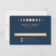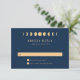 Tillsätt en touch av kosmisk elegans till din fest med vårt Celestial Wedding RSVP-kort. Fördjupa dig i den förtrollande enkelheten i vår design, som speglar den hypnotiska magin hos himlakroppar. Vår trendiga men tidlösa design visar en serie månfaser konstnärligt renderade i guld på en slående marinblå bakgrund. Denna touch av guld tillför en antydan om värme och gnistrande charm till den svala midnattsblå basen, vilket ytterligare förstärker den inbjudande lockelsen hos kortet. Designen håller en minimalistisk approach, vilket låter de himmelska elementen verkligen lysa. Du kan enkelt anpassa den för att passa dina behov, vilket säkerställer att varje del speglar din unika stil.