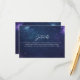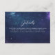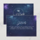 Dela viktig information med dina gäster med stil med detta romantiska himmelska bröllopsdetaljkort. Med en drömlik djupblå och violett stjärnhimmel på framsidan visas elegant din bröllopswebbplats, mottagningsdetaljer, boende eller vägbeskrivningar. Baksidan har ett charmigt älskande fågelmonogram. Perfekt för kosmiska, stjärnskådande eller romantiska himmelska bröllopsteman. Anpassas enkelt för att matcha ditt evenemang och koordinera med hela det himmelska bröllopspaketet.