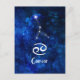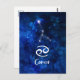 Design för galax för blått för cancerZodiackonstellation himmelsk. Med den borstade trendiget skriva stilsorten, mörk - slösa himmelsk vattenfärgbakgrundsstruktur, glödande stjärnakonstellation och krabbasymbolet. Modernt astrologiskt undertecknar födelsehoroskopet, är perfekt för någon cancerfödelsedag från Juni 21 - Juli 20! Gör en underbar gåva för någon flicka eller pojke, familjemedlemmar, tonåringar, frun, maken, vänner och astrologiälskare. Kosmisk vykort för utrymmenatthimmel!