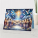 En lysande himmelskt scen vecklar ut sig när en mängd änglafigurer samlas under en strålande Betlehemsstjärna, deras vingar lyser mjukt under en stjärnklar himmel. Denna eteriska design fångar en känsla av frid, förundran och helig firande, med änglakörer iklädda flödande dräkter i guld, elfenben och mjuk lavendel. Flytande keruber fyller natthimlen ovanför en lysande by som ligger i en dal, drar betraktaren in i en lugn, gudomlig stund. Ljusförsedda städsegröna träd inramar förgrunden och tillför värme och säsongens charm. Denna komposition frammanar känslan av en helig natt och är perfekt för att inspirera till lugn och v