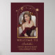 Celestial Red Gold 30-års välkomsthälsning Poster har en elegant guld sol, måne och stjärnor ram på en djup rosa-röd bakgrund. Inuti finns ditt favoritfoto och nedan din välkomsthälsning. Anpassa genom att redigera texten i textrutorna och lägga till ditt favoritfoto. Designad för dig av ©2024 Evco Studio www.zazzle.com/store/evcostudio