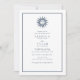 Blå och vita himmelska bröllopsinbjudningar tryckta med ett marinblått och vitt sol- och månmotiv. Solen förknippas ofta med manlig styrka och kraft. Månen förknippas med det kvinnliga i många kulturer, ofta i form av en gudinna. Detta är en vacker bröllopsinbjudan som visar hur era energier förenas på er bröllopsdag. Baksidan av inbjudan har ett blått agatpapper.