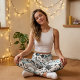 Lyft av i stil med dessa drömlika "Celestial Star Doodle"-leggings! Den krispiga vita basen är täckt av ett roligt, all-over abstrakt stjärnmönster med handritade stjärnor i djärvt svart, levande teal och mjuk himmelblå. Vissa stjärnor är solida, andra är konturerade och några är fyllda med lekfulla ränder och prickar som ger trycket en magisk stjärnklar galax-känsla.