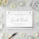 Tillsätt en mjuk och elegant touch till din fest med denna himmelska vita silver bröllopsgästbok, med vackra detaljer av sol, måne och stjärnor i en tidlös vit och silverpalett. Perfekt för himmelska, mystiska och moderna romantiska bröllop, ger denna gästbok en chic, lysande känsla till din mottagningsdekor samtidigt som den ger gästerna en meningsfull plats att dela sina hjärtliga önskningar.