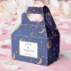 Elegant himmelskt bröllopspresentförpackning med guldstjärnor och månar och modern typografi. Du kan anpassa med ditt eget tackmeddelande på baksidan. Ett perfekt sätt att tacka dina gäster! Designad av Thisisnotme©