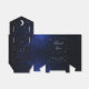 En blå guldförmånslåda för ett himmelskt bröllopstema, med silvriga stjärnor på mörkblå natthimmelsbakgrund.