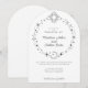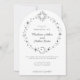 En enkel himmelskt tematiskt bröllopsinbjudan med sol, halvmåne och stjärnor i en cirkel.