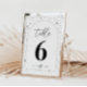 Ett himmelskt tema för måne och stjärna bröllopsbord namn som har samma design på baksidan, för att hjälpa gästerna hitta sitt bord. Anpassa färgen på stjärnmönstret, bakgrunden, valvets fyllning och månens element! Du måste köpa en för varje bordnummer på ditt bröllop.