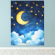 Upplev den lugna skönheten i 'Celestial Serenity', ett fängslande konstverk som fångar essensen av en stjärnklar natthimmel. Denna pjäs visar en fantastisk avbildning av en halvmåne som lyser mjukt mot en djupblå bakgrund, omgiven av tindrande stjärnor och ömtåliga moln. De varma, gyllene nyanserna av månen och stjärnorna kontrasterar vackert mot de svala tonerna på natthimlen och skapar en känsla av frid och förundran. Perfekt för dem som vill föra in en touch av himmelsk magi och stillhet i sina bostäder.