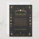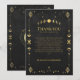 Denna himmelska gotiska svarta och gyllene tacksamhetskort för bröllop visar raffinerade himmelska detaljer, lysande månfaser och geometrisk tarot-inspirerad ornamentik i antikt guld på en djup kolmörk bakgrund.