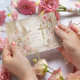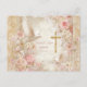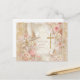 Dela den gudomliga elegansen av hennes speciella dag med det personliga vykortet Heavenly Blush & Gold Quince. Detta vackra vykort har en lugn och andlig design med mjuka rosa nyanser, ömtåliga blomaccenter och glänsande gulddetaljer. Den vackra illustrationen inkluderar graciösa duvor i flykt och ett magnifikt gyllene kors, vilket gör det till en perfekt symbol för tro och firande.
