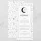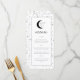 En himmelsk måne- och stjärntema bröllopsmeny. Anpassa färgen på stjärnmönstret, bakgrunden, valvets fyllning och månens element!